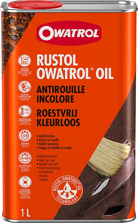 Cet antirouille incolore Rustol Owatrol stoppe et stabilise la rouille et protège également en profondeur jusqu’au métal sain. S’utilise comme diluant, il permet de peindre directement sans décapage. Adhère sur tous supports.