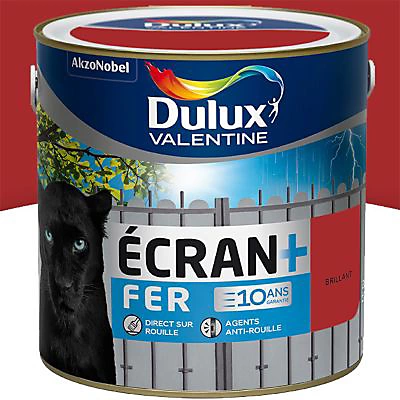 Redonnez un nouvel éclat à votre habitat avec cette peinture de qualité fer antirouille Dulux Valentine Ecran+ rouge agricole brillant 2L