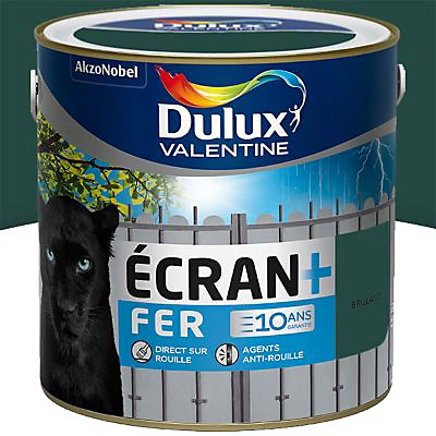 Redonnez un nouvel éclat à votre habitat avec cette peinture de qualité fer antirouille Dulux Valentine Ecran+ vert patrick brillant 2L