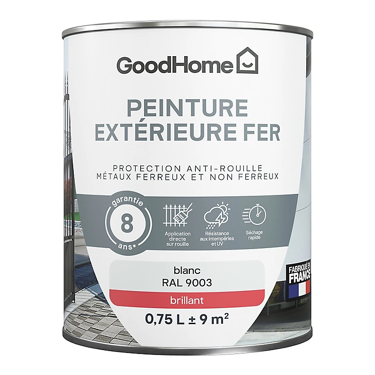 Peinture extérieure métal GoodHome blanc RAL 9003 brillant 0.75L