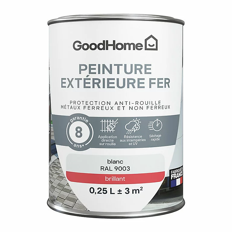 Peinture extérieure métal GoodHome blanc RAL 9003 brillant 250ml