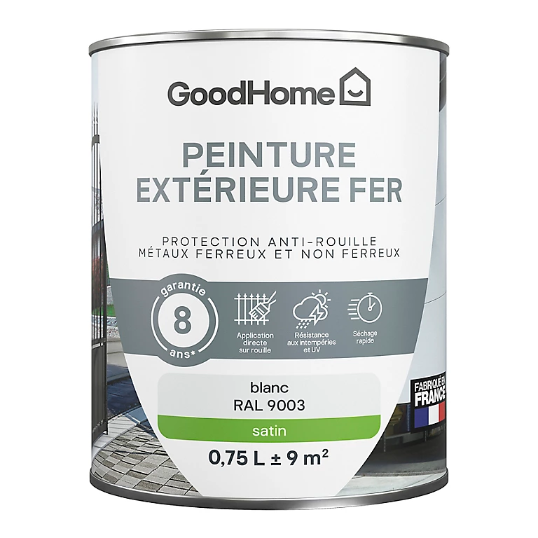 Peinture extérieure métal GoodHome blanc RAL 9003 satin 0.75L