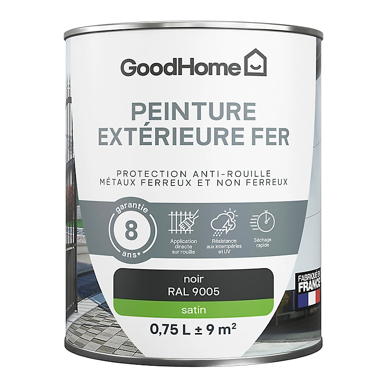 Peinture extérieure métal GoodHome noir RAL 9005 satin 0.75L