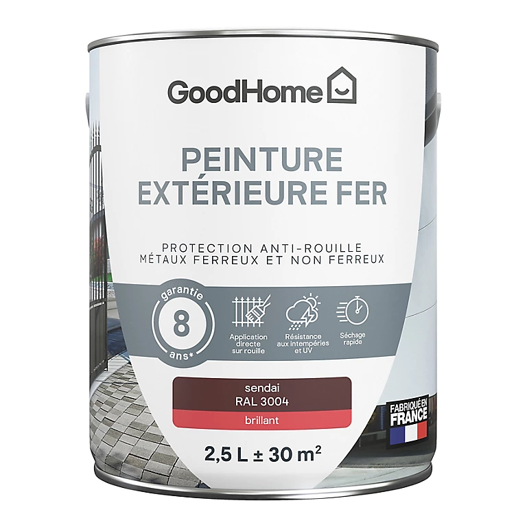 Peinture extérieure métal GoodHome Sendai rouge RAL 3004 brillant 2.5L