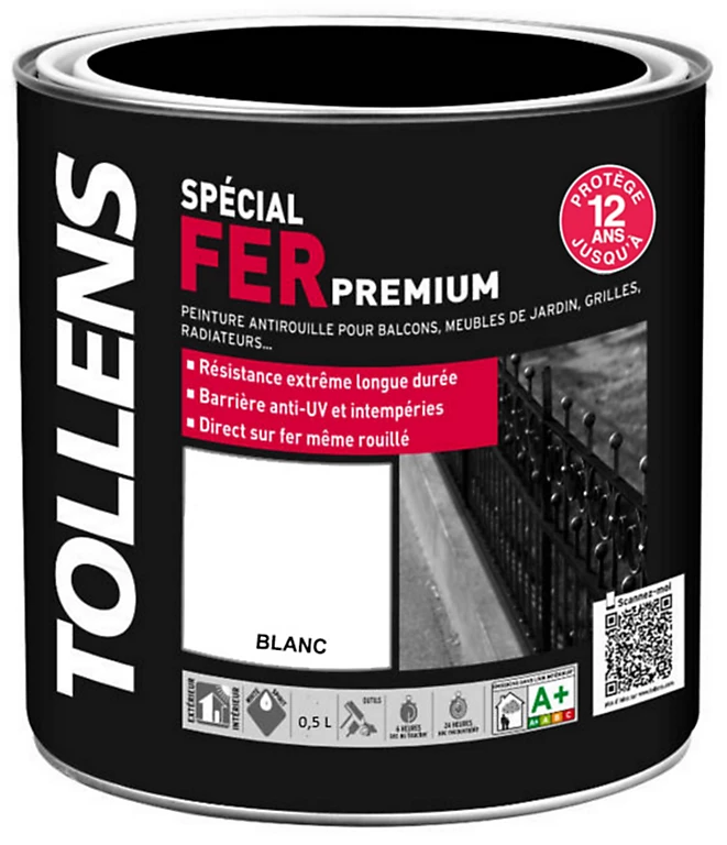 Redonnez un éclat à votre habitat! Cette peinture fer Tollens blanc brillant 0,5L est conçue pour vos métaux ferreux : acier, fer, fonte et métaux non ferreux : zinc, cuivre, aluminium (après une préparation adaptée et selon consignes à respecter et restrictions d’usage).
