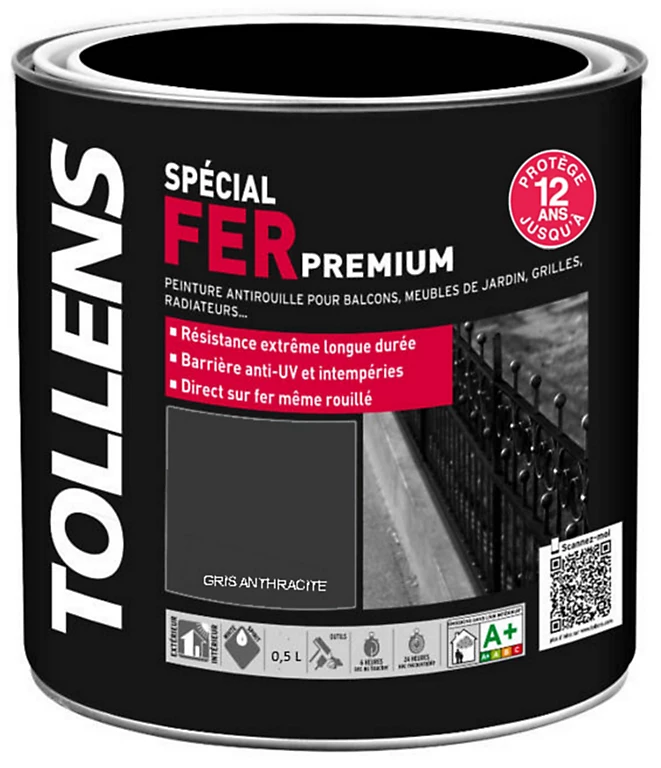Redonnez un éclat à votre habitat! Cette peinture spéciale fer extérieur/intérieur Tollens gris anthracite brillant 0,5L est conçue pour vos métaux ferreux : acier, fer, fonte et métaux non ferreux : zinc, cuivre, aluminium (après une préparation adaptée et selon consignes à respecter).