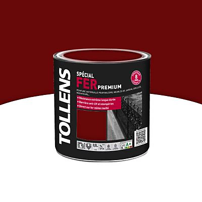 Redonnez un éclat à votre habitat! Cette peinture fer Tollens rouge basque brillant 0,5L est conçue pour vos métaux ferreux : acier, fer, fonte et métaux non ferreux : zinc, cuivre, aluminium (après une préparation adaptée et selon consignes à respecter et restrictions d’usage).