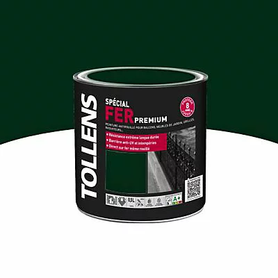 Redonnez un éclat à votre habitat ! Cette peinture fer Tollens vert basque brillant 0,5 L est conçue pour vos métaux ferreux : acier, fer, fonte et métaux non ferreux : zinc, cuivre, aluminium (après une préparation adaptée et selon consignes à respecter et restrictions d’usage).
