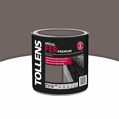 Redonnez un éclat à votre habitat! Cette peinture fer Tollens Premium brun chocolat brillant 0,5L est conçue pour vos métaux ferreux : acier, fer, fonte et métaux non ferreux : zinc, cuivre, aluminium (après une préparation adaptée et selon consignes à respecter).
