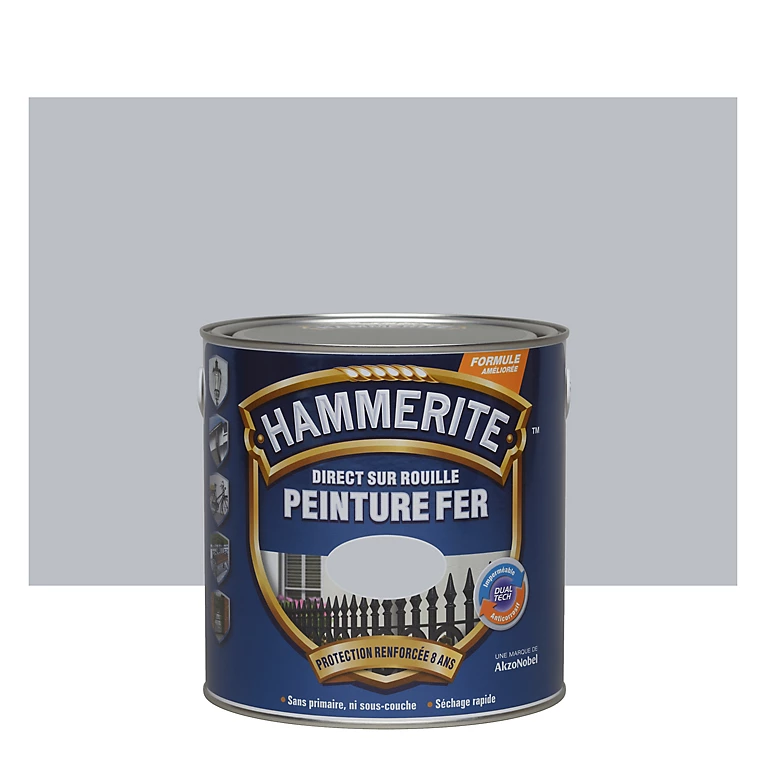 Redonnez un nouvel éclat à votre habitat avec cette peinture fer direct sur rouille Hammerite argent brillant laqué 2,5L