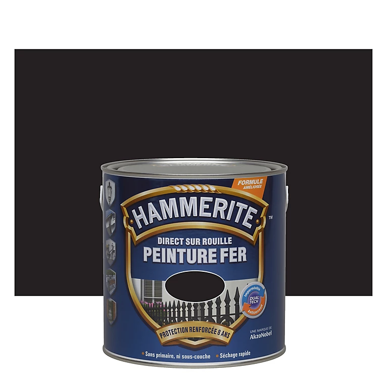 Redonnez un nouvel éclat à votre habitat avec cette peinture fer direct sur rouille Hammerite noir brillant laqué 2,5L