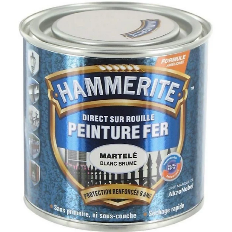 Avec son aspect martelé ,cette peinture s’applique direct sur rouille. Sans préparation excessive, elle est réputée comme un produit d’exception. Peinture esthétique antirouille, elle assure avec un seul et même produit la protection contre la corrosion pendant 8 ans. Idéal pour la décoration de métaux ferreux et non ferreux, du bois et de certains plastiques, sa formule gélifiée empêche les coulures. Hammerite sèche très rapidement et permet l’application de plusieurs couches en quelques heures au pinceau, au pistolet et au rouleau suivant des consignes à respecter.